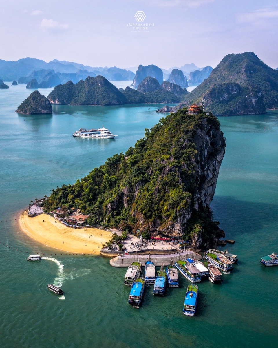 Large sandy beach in Halong Bay (Photo: Ambassador Cruise)
