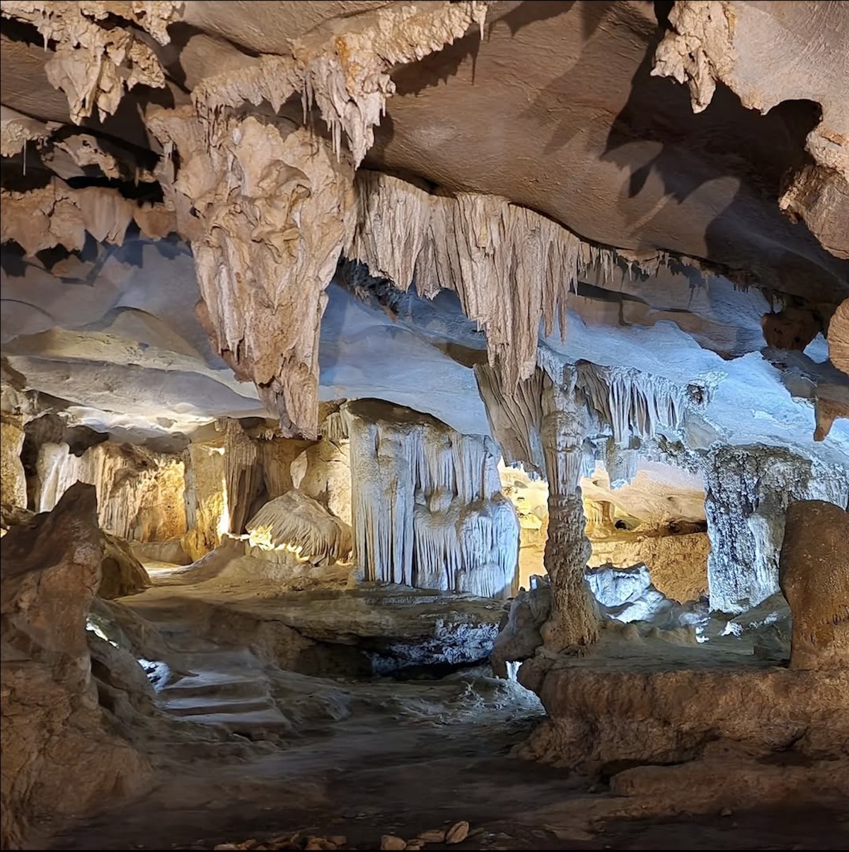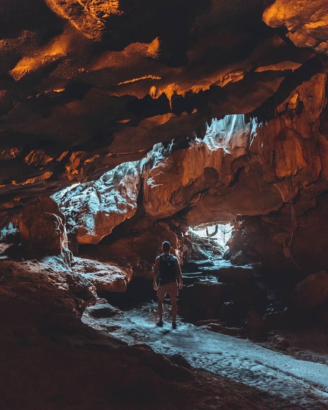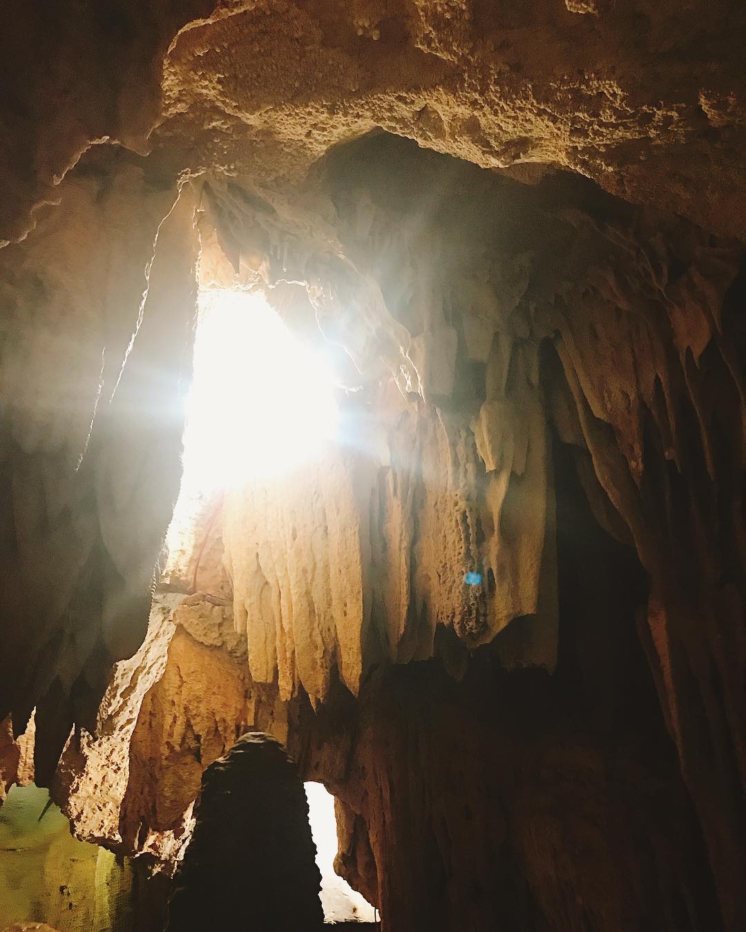 Sunlight streams through rock formations, revealing the cave’s hidden chambers and mysterious beaut