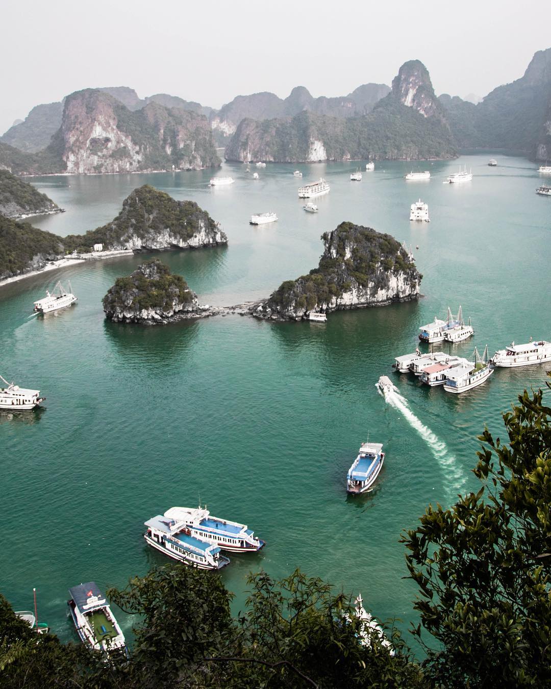 From the top of Bai Tho Mountain (Poem Mountain), Halong Bay unfolds like a painting