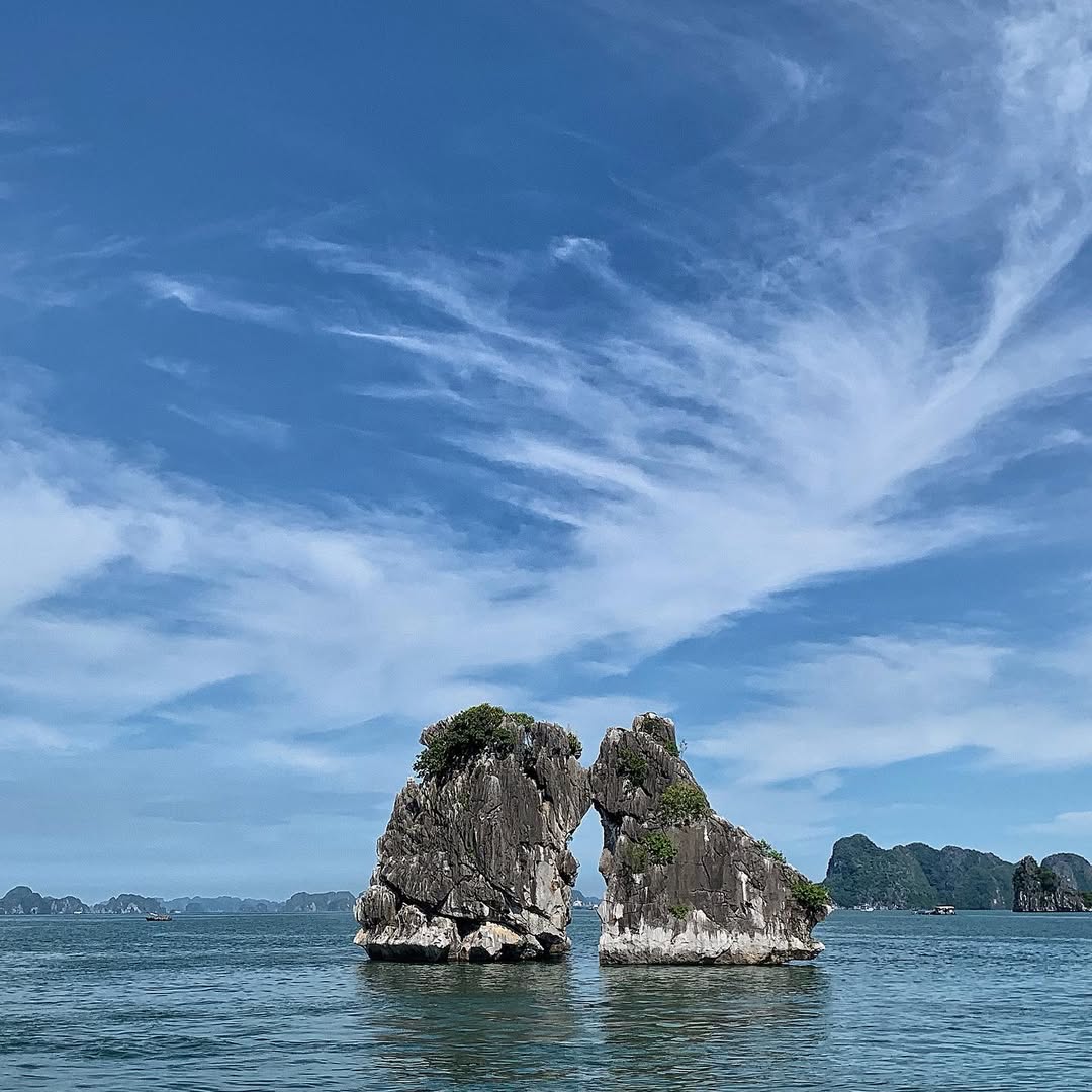 Halong Bay’s iconic symbol, with two giant rocks facing each other like a pair of roosters.
