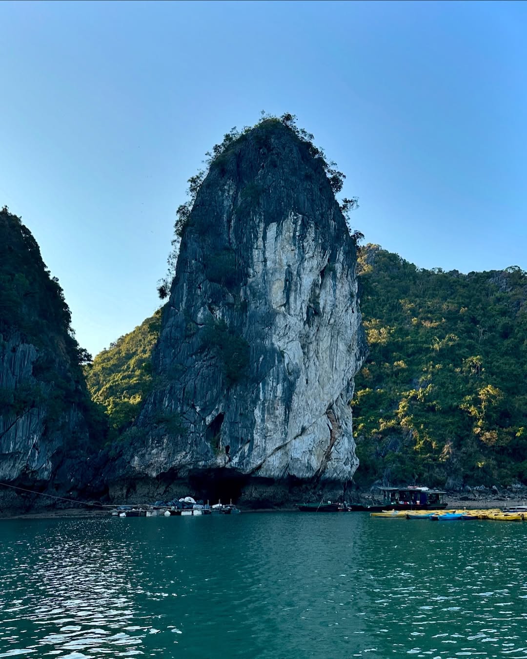 Lan Ha Bay offers a different experience from the bustling Halong Bay. The water here is clear and calm, kayaks glide slowly through the lagoons hidden behind the rocky mountains, only the sound of paddles and birds echoing. Many tourists like to visit the floating fishing village to feel the rustic life of fishermen. And after a day of exploring, there is nothing better than floating in the calm water or sitting on the deck watching the sunset over the bay.