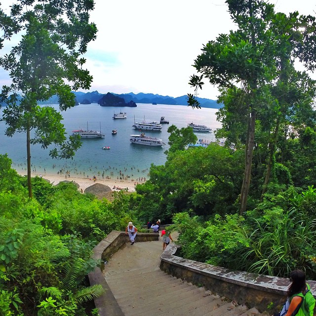 Home to playful monkeys and a short hike that rewards you with panoramic views over Lan Ha Bay