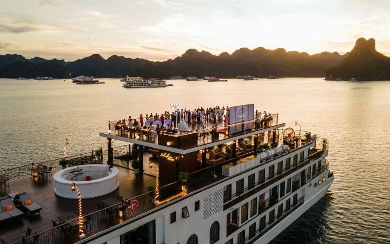 - Scenery & atmosphere: Forget formal ballrooms - Halong Bay is your setting. Towering limestone walls, emerald waters, and at that which the sun does put forth, a very bright red light which almost sets the tone that is your stage which is like no other.